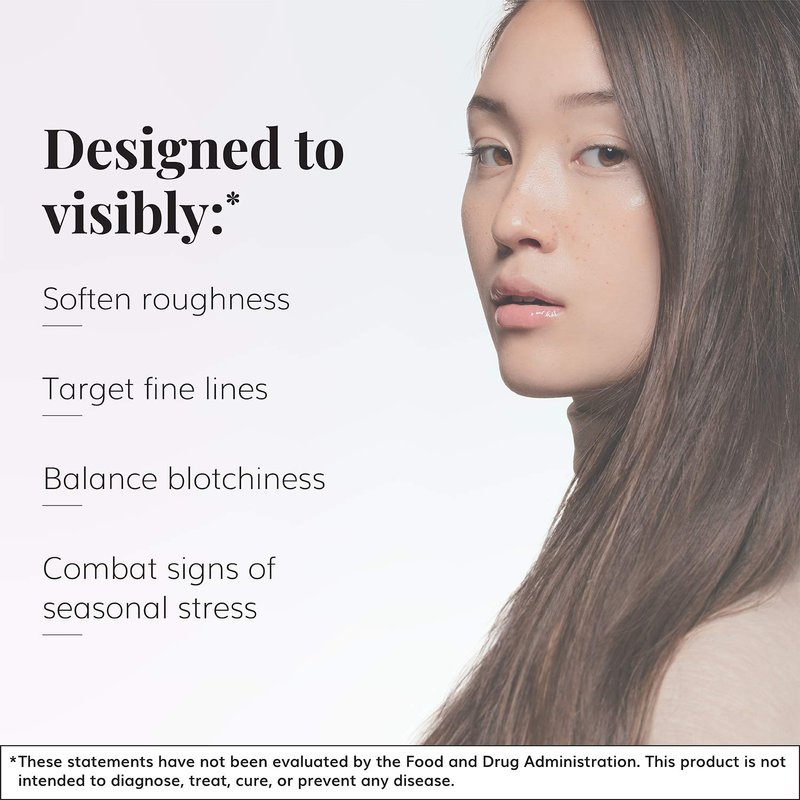 - Helps restore a healthy glow, balance uneven tone, address visible signs of aging and soften roughness.*