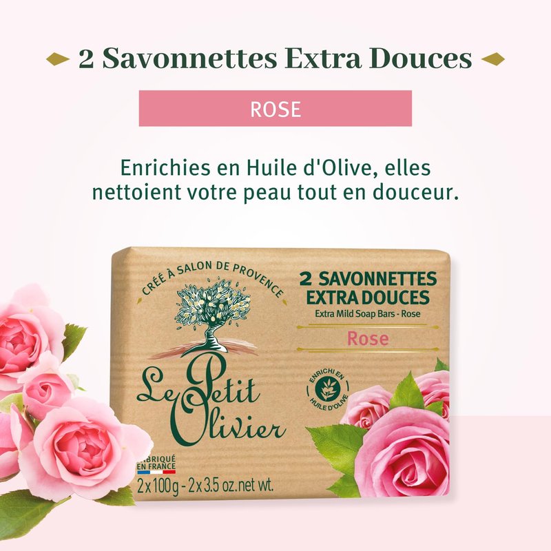 - Natural Enrichment: The Le Petit Olivier Extra Mild Rose Soap Bars are crafted with care and enriched with olive oil and natural extracts to enhance your skin's radiance.