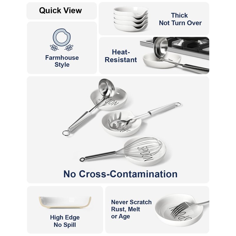 - Excellent Ceramic Material - Made of high-quality ceramic, lead and cadmium free, no odor. Has extremely high heat-resistant properties and can be placed casually next to the stove without worrying if it melts. The weight of the ceramic provides stability, will not move easily when placing spoons.