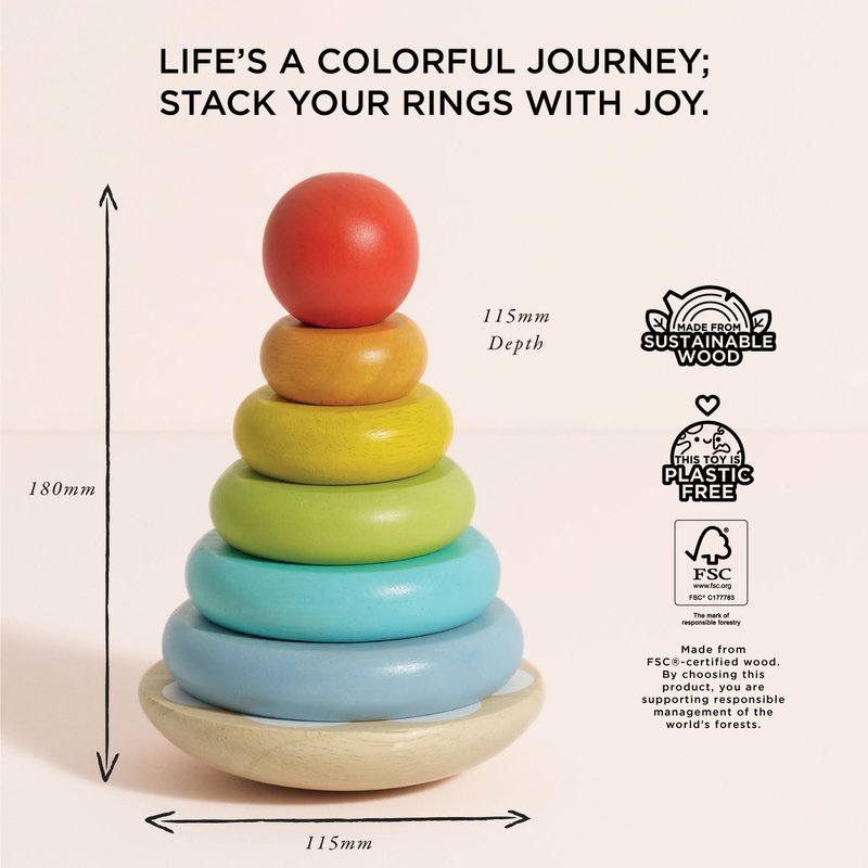 - SAFE, HIGH QUALITY, FROM SUSTAINABLE FORESTS - Decorated with water-based, chip-resistant non-toxic paints and tested to the highest safety standards. Includes 5 stacking rings, 1 wobbly base and a cap