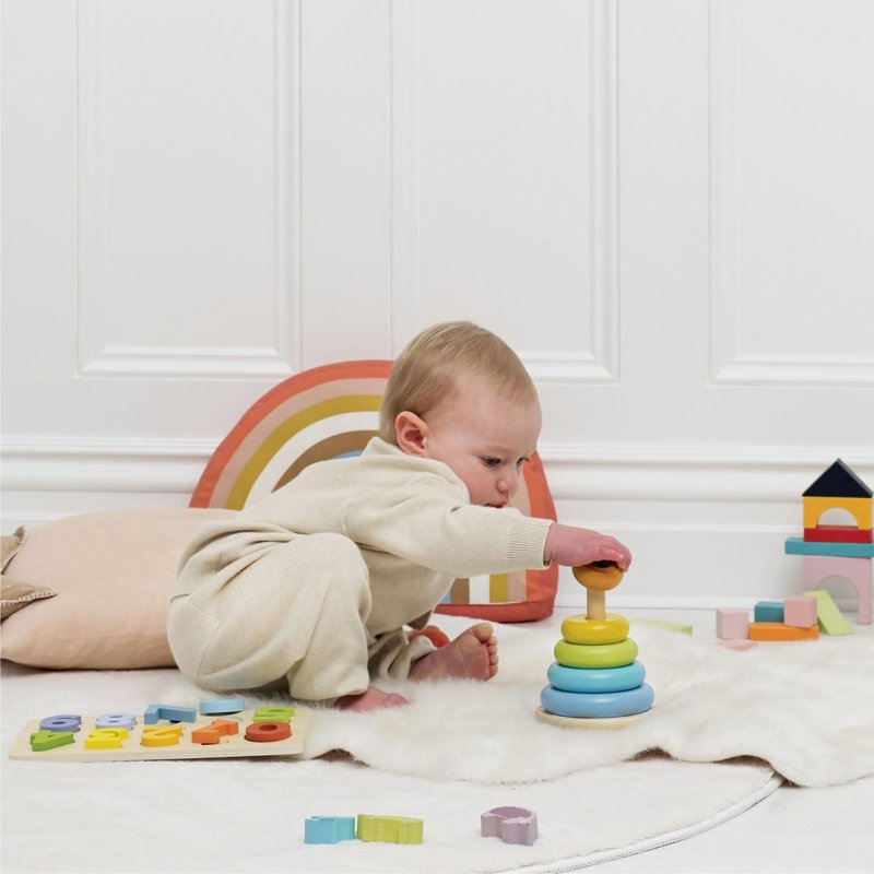 - BEAUTIFULLY CONSTRUCTED CLASSIC STYLE WOODEN TOY - Le Toy Van make beautifully crafted toddler toys like this delightful Rainbow Stacker. Includes 5 stacking rings, a wobbling base and a bright top to provide a hands on learning experience