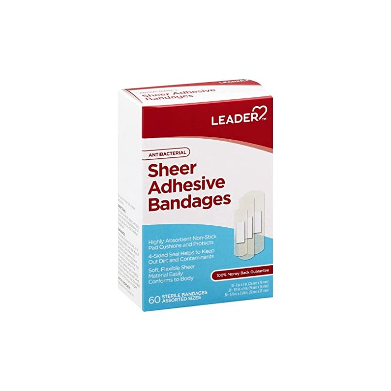 - Leader Sheer Adhesive Bandages are made of a sheer, soft material that’s comfortable to wear. It's fabric flexes along with you, and seals to the skin on all four sides of the cut to provide extra protection from dirt and contaminants