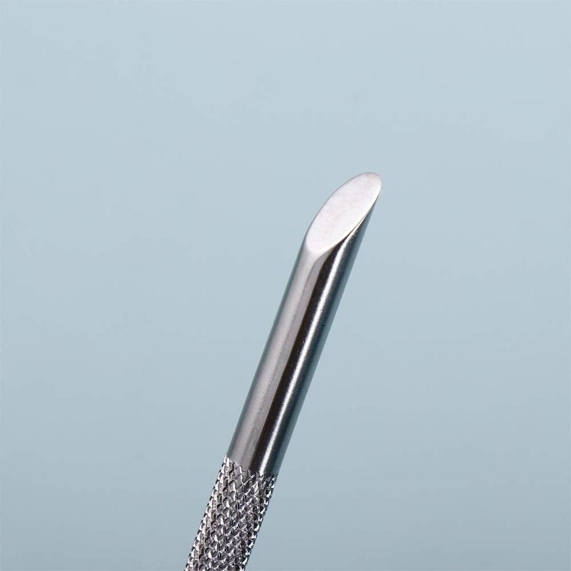 - Dual-ended design: This stainless steel nail tool features a dual-ended design with a pointed tip for precision work and a flat angled end for dead skin removal.
