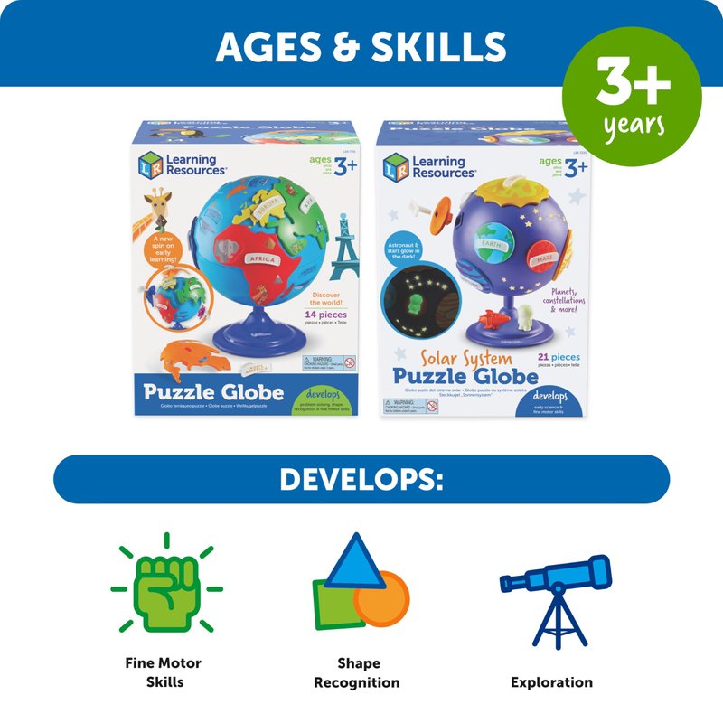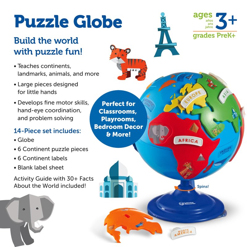 Learning Resources Puzzle Globe - 14 Pieces, Ages 3+ Preschool Learning Toys for Boys and Girls, Earth Globe for Kids