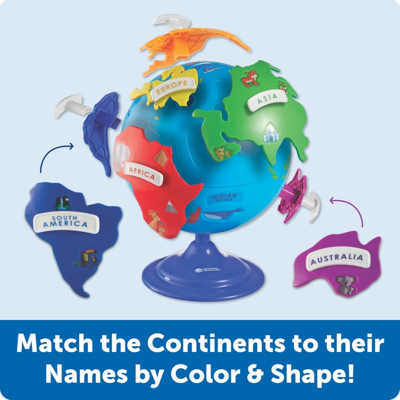 - PERFECT FOR SMALL HANDS: Each continent piece is chunky and easy for little hands to grasp; the largest piece (Asia) measures 5¾ inches in length. Kids will love this puzzle globe!
