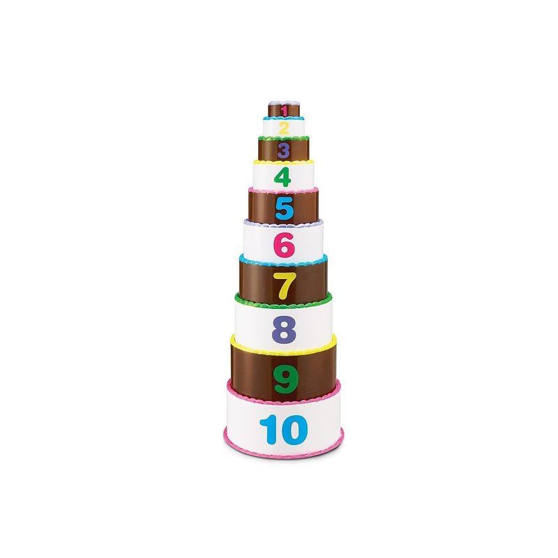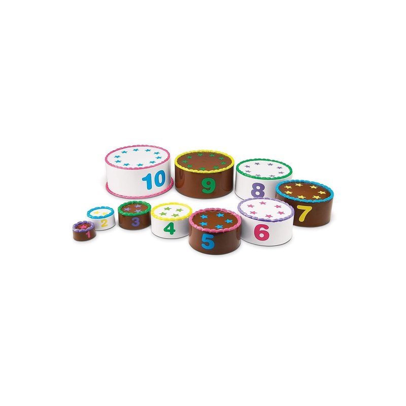 - 10 gradient stacking cakes in alternating even and odd layers of chocolate and vanilla help kids build fine motor skills while learning about counting