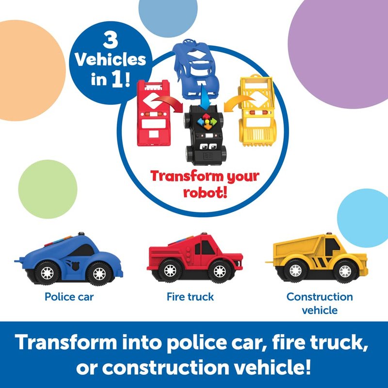 - Transform, Code, and Save the Day!: Draw a coding rescue challenge card, snap on one of three vehicle shells (police car, fire truck, or construction vehicle), and code to solve the mission! Powered by AAA batteries ( not included)