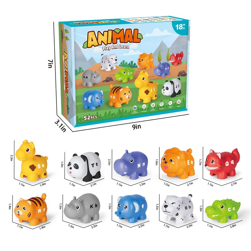 These animal matching toys are perfect for toddlers and preschoolers who are learning their letters and animals. The set includes 26 wooden letters and 26 corresponding animal shapes, all of which are beautifully hand painted and crafted. The letters are large and easy to grip, making them perfect for little hands, and the animals are adorable and colorful, making them engaging and fun to play with. The set also includes a wooden storage box, which makes it easy to keep all of the pieces together and to transport them from one place to another. These toys are not only educational but also help to develop fine motor skills, hand-eye coordination, and problem-solving abilities. They are also a great way to encourage creativity and imagination, as children can use the pieces to create their own stories and scenarios. Overall, these animal matching toys are a great addition to any early childhood education program, and they are sure to be loved by children and parents alike.