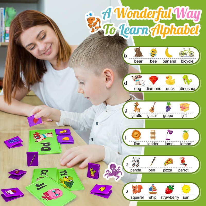 - Educational and Enjoyable: With enough picture clips to complete all the boards at once, the set is perfect for multiple children to use at the same time! Stimulate children's learning interest through engaging in matching games, helping them effortlessly understand that letters are made up of sounds helping children to read and write fluently