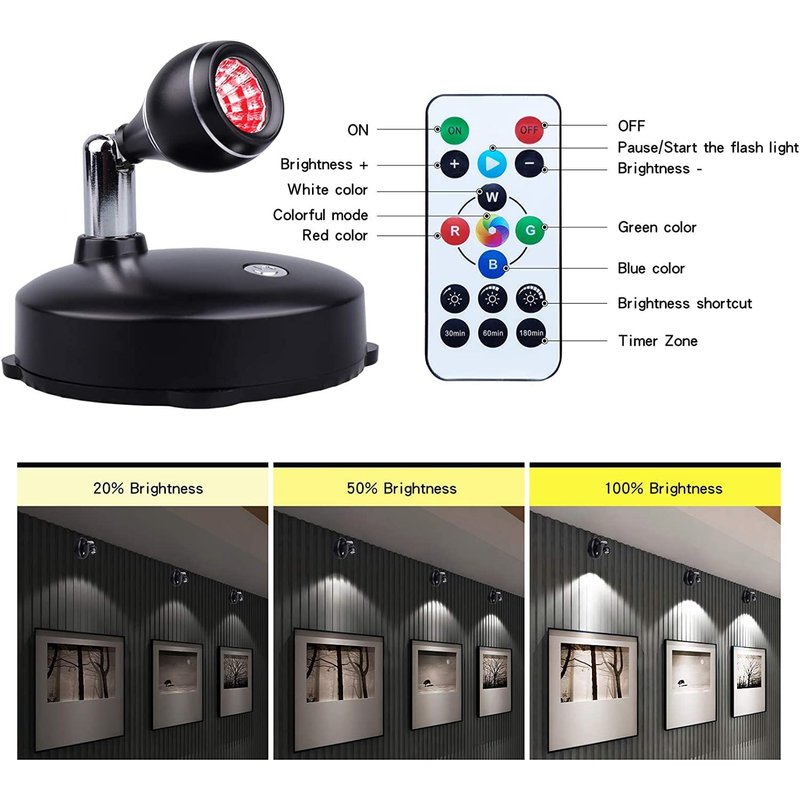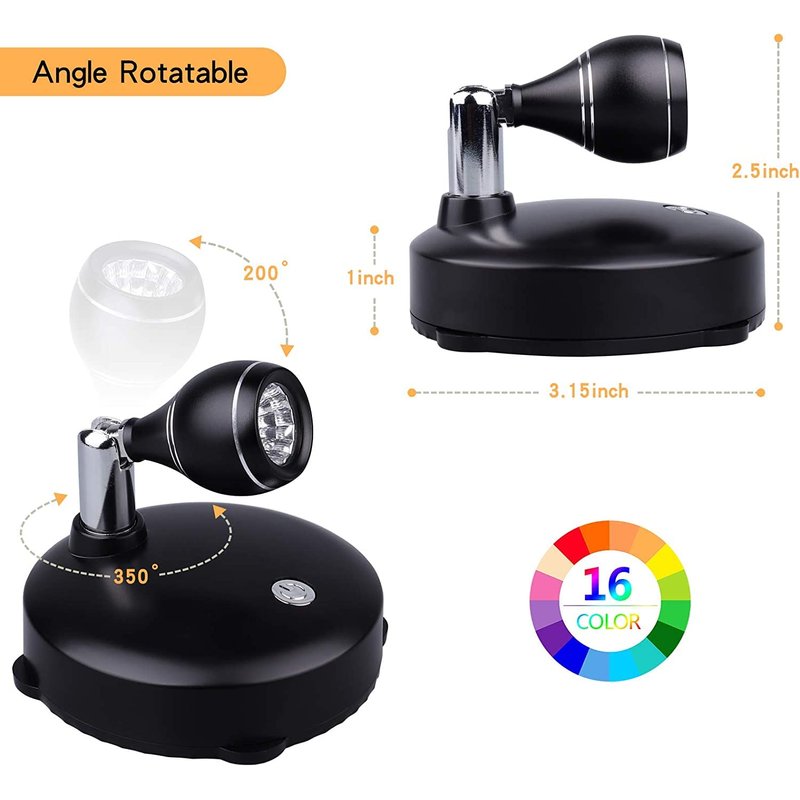 - ☀6000K White Light &16 RGB Colors Changing - This mini portable small art light can change white light (6000K) and other 16 preset RGB colors, giving you a cool, cheerful and romantic feeling. Perfect for adding to wall art, Easter, Halloween, Christmas and other festive decorations. NOTE: The small battery powered spotlight may not be suitable for large areas where extra brightness is required.