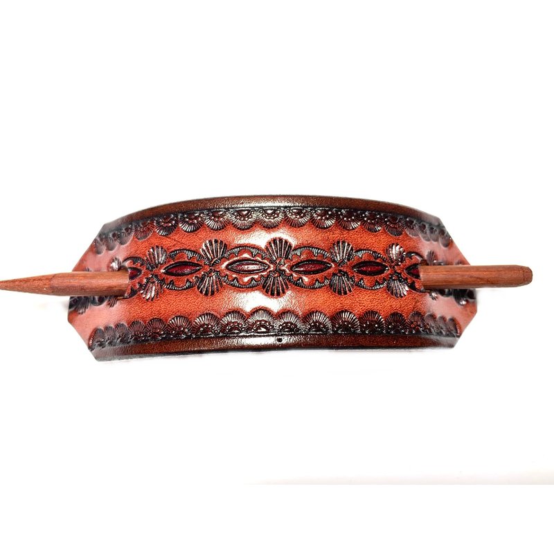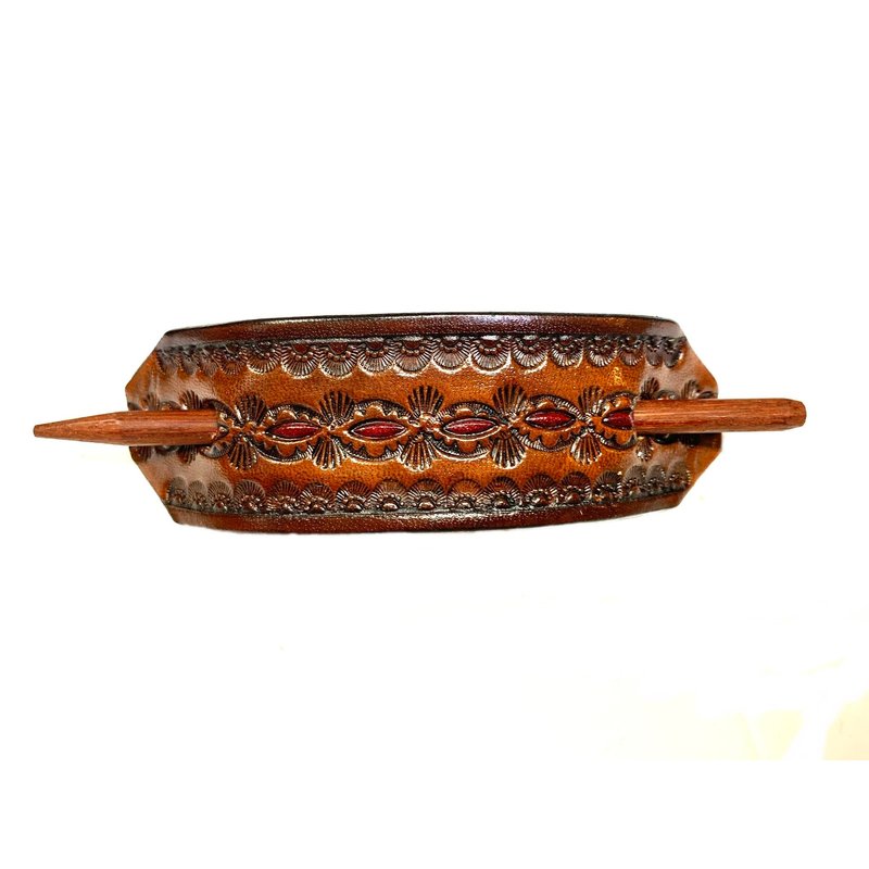 Leather Hair Barrette with Stick…. Unique Design Ponytail Holder for Women….. Hand Tooled Hair Clip….. Choice of 3 Colors #BT 2019