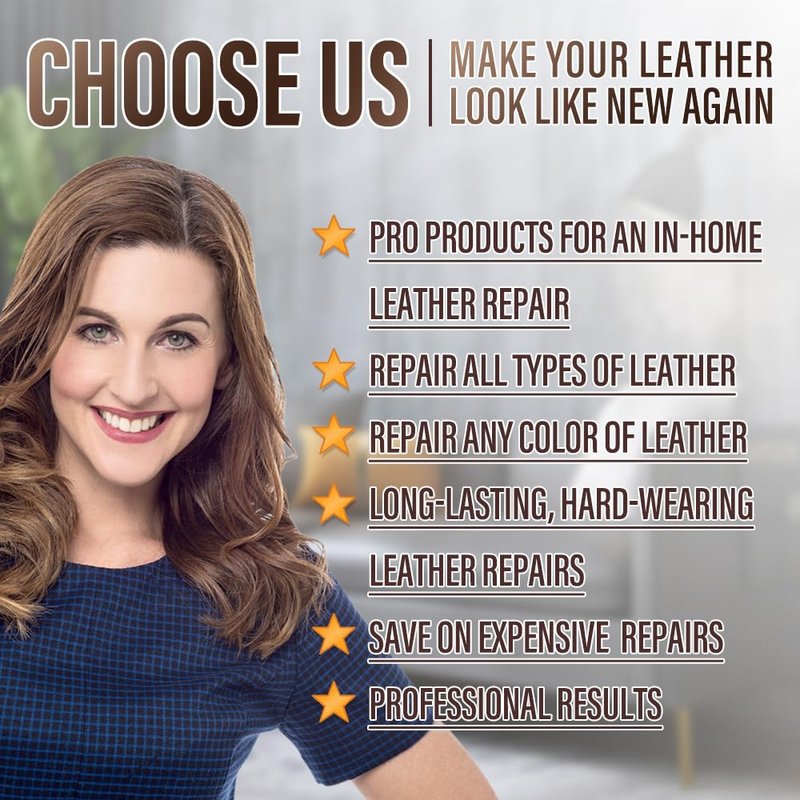 Leather Repair Kit for Furniture, Sofa, Jacket, Car Seats and Purse. Vinyl Repair Kit. Super Easy Instructions to Match Any Color, Restore Any Material, Bonded, Italian, Pleather, Genuine