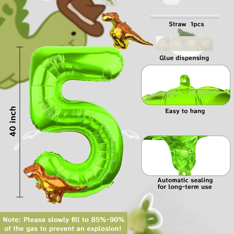 - 【Unique Design】: Our mini dinosaur balloons is lovely and will be very popular in the party. It is a huge size of number balloon and with green color visual effects, which looks good when taking pictures. Make great photo booth props to hold when posing for photos! It is very large, a perfect addition for children's birthday parties, will make the events more charming and impressive, leave memorable time for the guests. Please do not inflate the balloon by more than 90%.