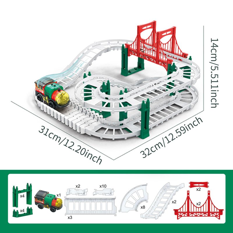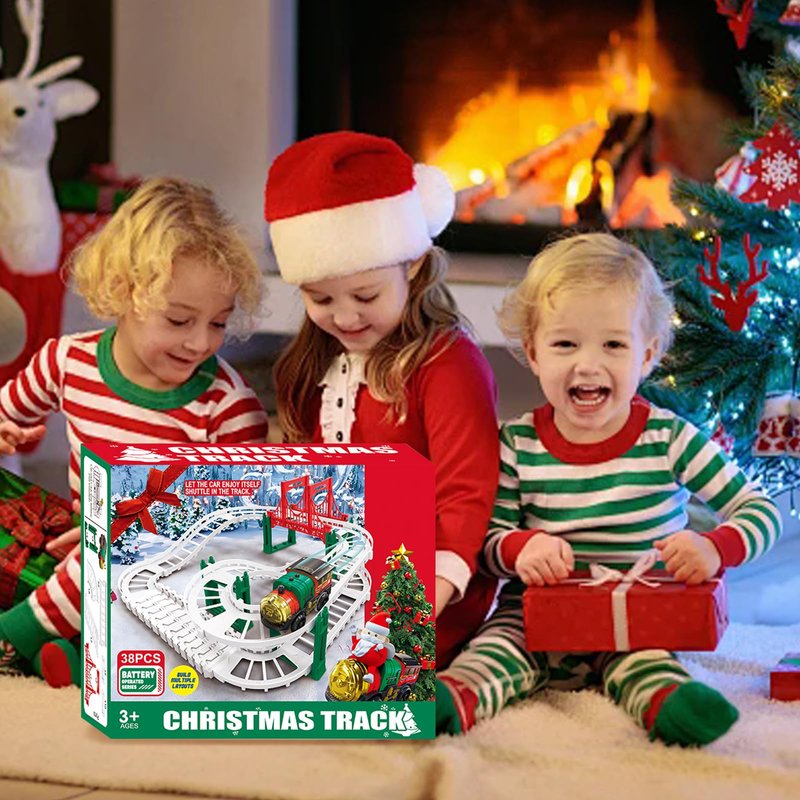 Introducing our Christmas Train Track Set, the perfect holiday gift for kids of all ages! This set includes 38 accessories so your kids can create their own holiday train display. Designed for easy battery installation and DIY assembly of the tracks, this train set offers endless hours of imaginative play for boys and girls. It is suitable for ages 3-5, 4-6 and 5-8, making it a versatile toy for all ages. Our Christmas train track set is not only a fun toy, but also a great way to improve children's motor skills and creativity. The vibrant Christmas colors and holiday-themed design will add a special touch to your Christmas decorations as it can be set up around the tree or as a stand-alone display. Made with safety in mind, this train set is made of durable and non-toxic quality materials. Train toys for a complete train experience for your little conductor. Whether you're looking for a Christmas gift or a toy to entertain your child, our Christmas train track set is the perfect choice. Get ready to have fun with Christmas track cars and create unforgettable holiday memories with this delightful train set!