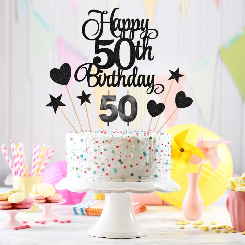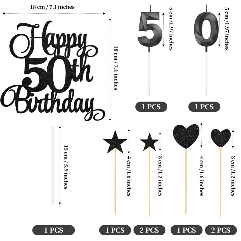 - Package content: you will receive 1 piece happy 50th birthday topper, 3 pieces star cake toppers, 3 pieces heart cake toppers and 2 pieces numeral candles, it's a great addition to the 50th birthday party and anniversary party