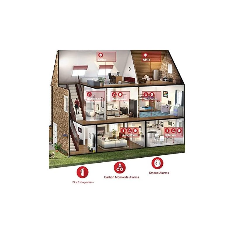 - Suitable for multiple places: This smoke alarm does not contain any radioactive material. Smoke alarms should be installed in every room (except the bathroom and kitchen), finished attics and basements, making sure the people in your home will be able to hear and respond to the alarm sound.