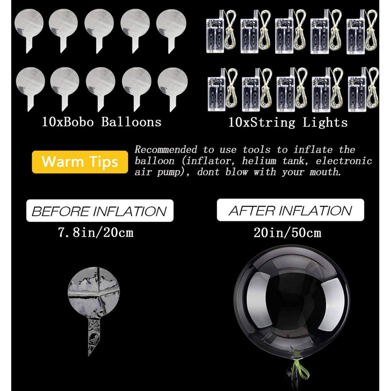 LED Balloons 10 Pack, Light Up Balloons 20 Inches Clear Helium Bobo Balloons, Glow Bubble Balloons with String Lights for Valentines Day Halloween Christmas Wedding Birthday Party Decoration