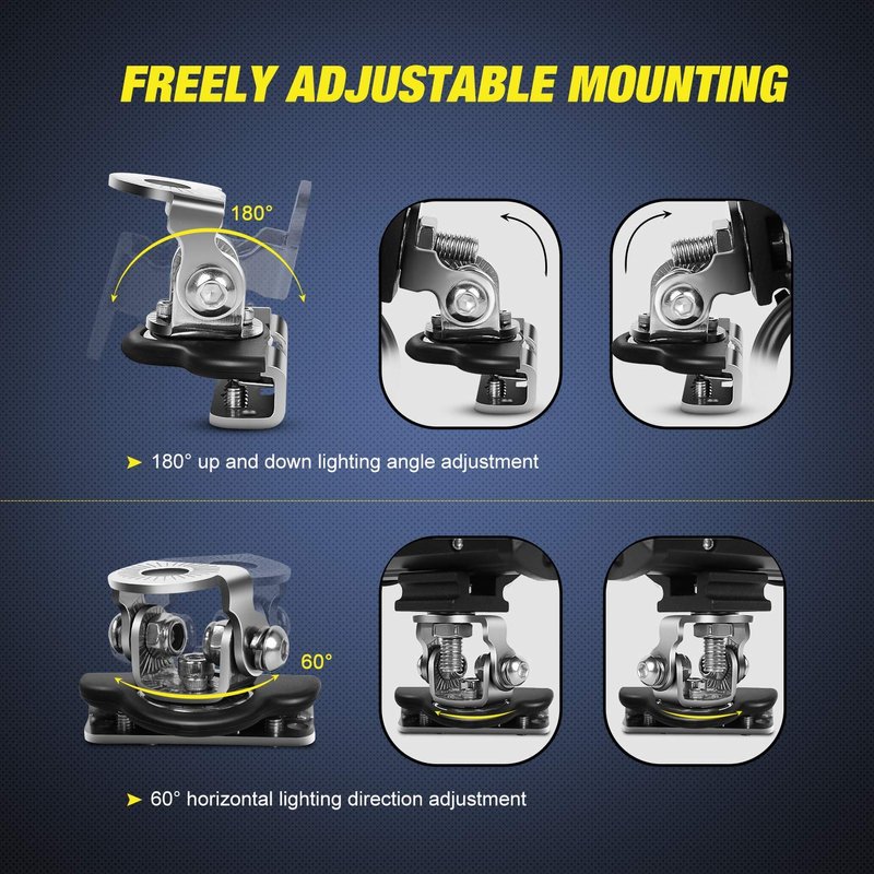 - Free Adjustability: You’re able to freely adjust 180°up and down and 60°left and right to make sure your light is at the exact lighting direction and at a perfect lighting angle.