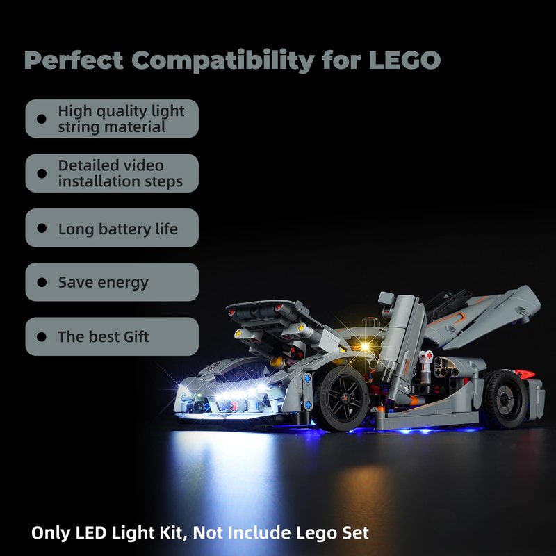 - 【Safety & Perfectly Fit】: The high-grade ABS material and built-in resistance in the light kit can prevent the light from overheating and burning. 2mm tiny wire is easy to be hidden, which will not affect the look of your Lego Technic Koenigsegg 42173