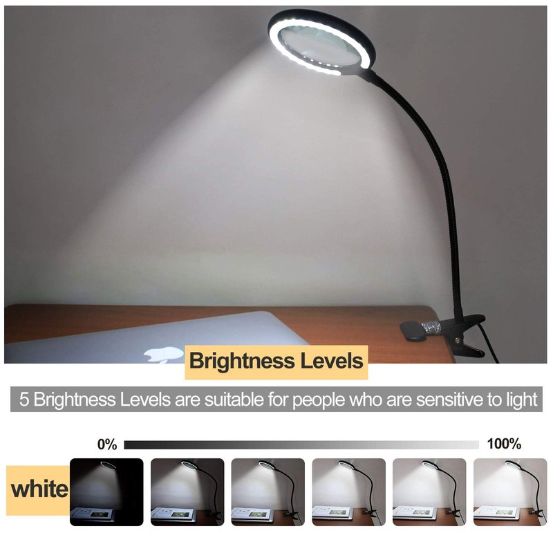 - 【Lightweight & Easy to use】: This magnifying glass with clamp has a power switch which allows you to easily adjust the brightness. You can use a portable USB battery (not included) to run it, or you can plug it into a socket to select the brightness you want. It is lightweight and can be moved from one location to another without taking up a lot of space.