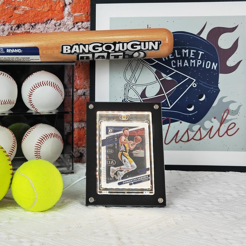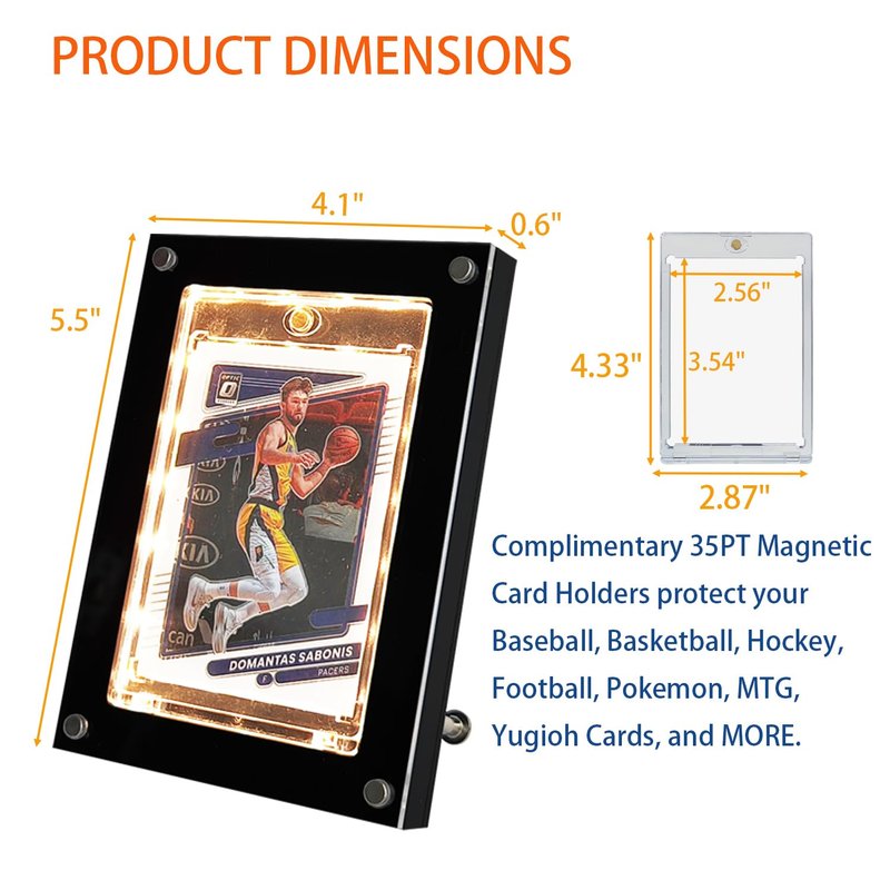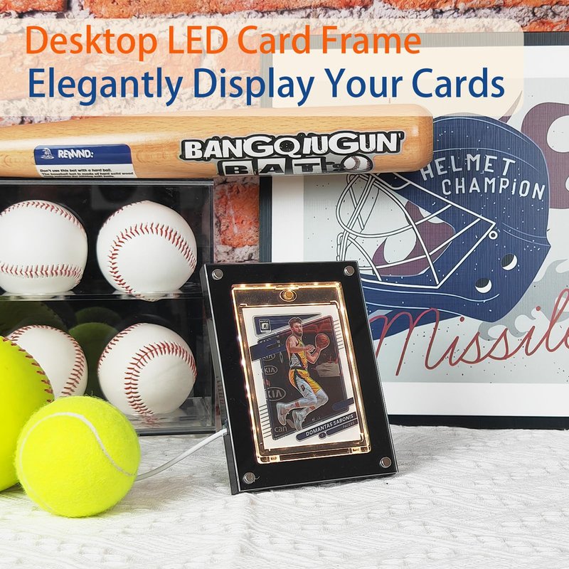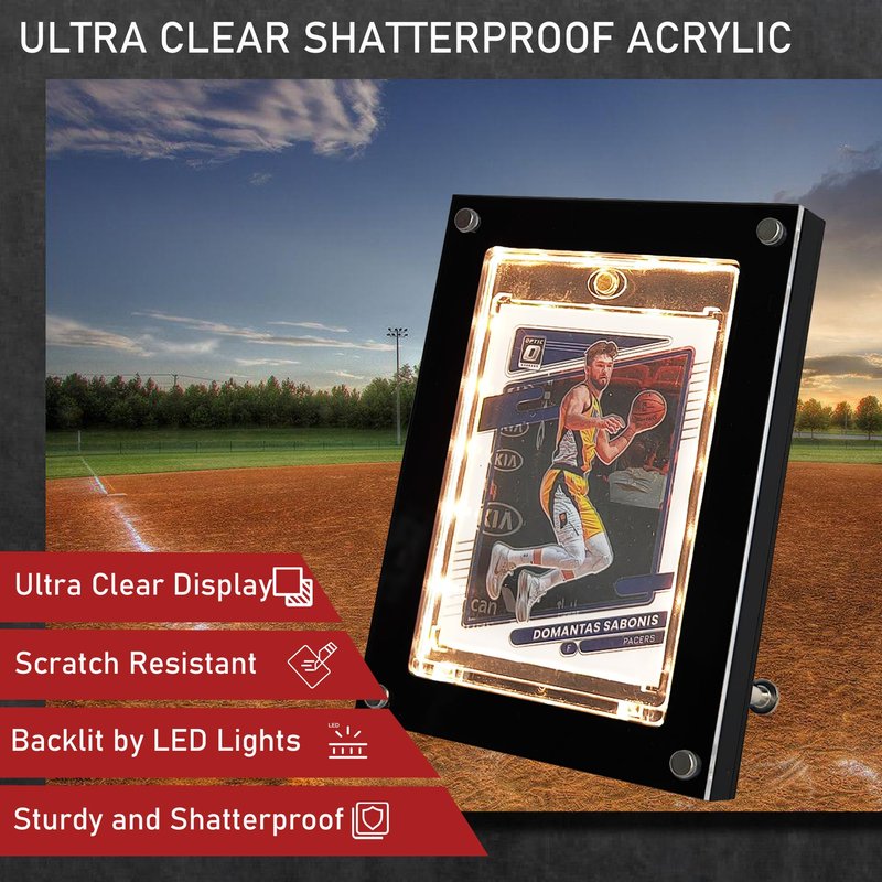 - Introducing our LED-enhanced display, it safeguards and spotlights your collectibles with a USB-powered LED light, adjustable in brightness and color, making your sports card display vibrantly eye-catching.
