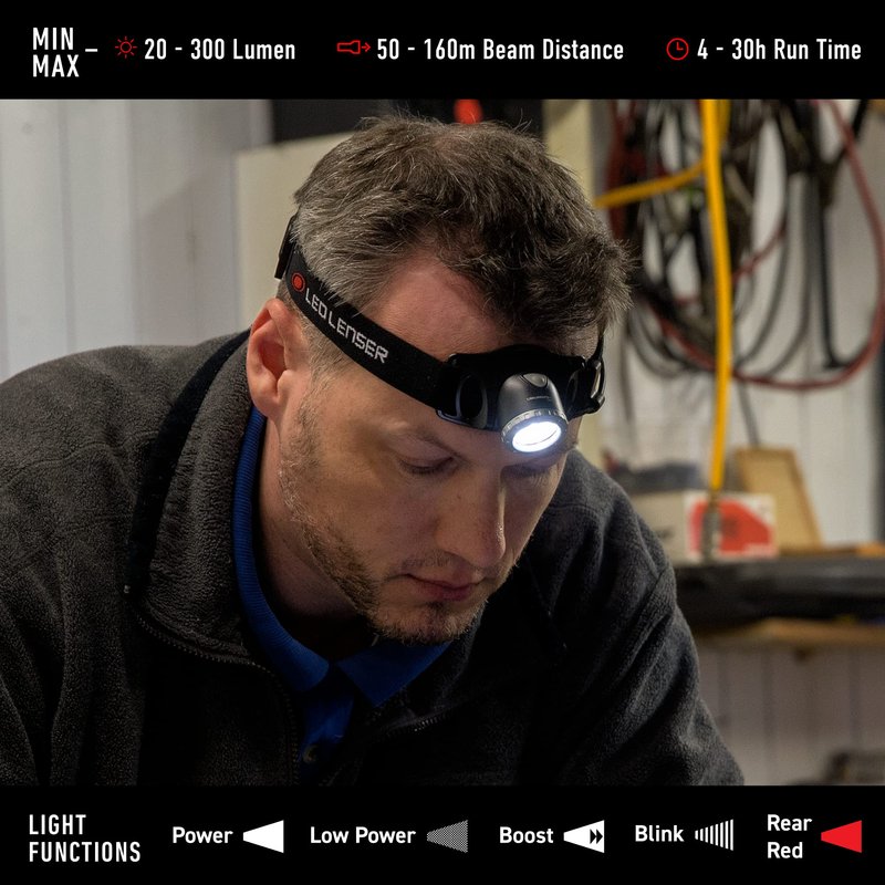 - SEE EVERYTHING, DO ANYTHING: With 20-300 lumens and a 160-525 foot range, the H7R.2 can navigate the garage or job site. And with Advanced Focus System, your Ledlenser gives you the brightest, most even light possible.