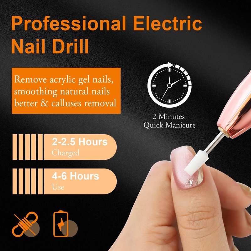 - 【NAIL DRILL-PROFESSIONAL HAND AND FEET NAIL CARE】This professional manicure and pedicure electric nail file is nail salon quality, suitable for trimming, grinding and polishing naturally thick and fragile nails, suitable for men, women and children. It's great for removing cuticles, hard skin, calluses and corns. With this electric nail file, you'll have healthy, clean, neat manicures and toenails, as well as amazing hand and foot care.