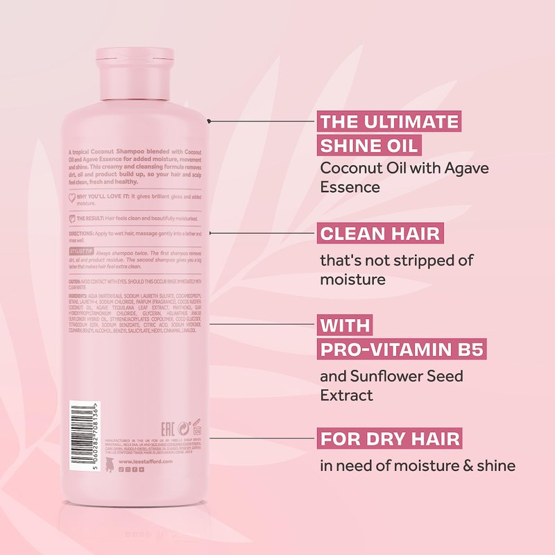 The extra-large Coco Loco Shine Shampoo is a moisturising shampoo for dry, damaged hair that's packed full of coconutty goodness and blended with Agave Essence. It contains Coconut Oil, a natural nutrient that provides the essential proteins required for nourishing and repairing your hair.