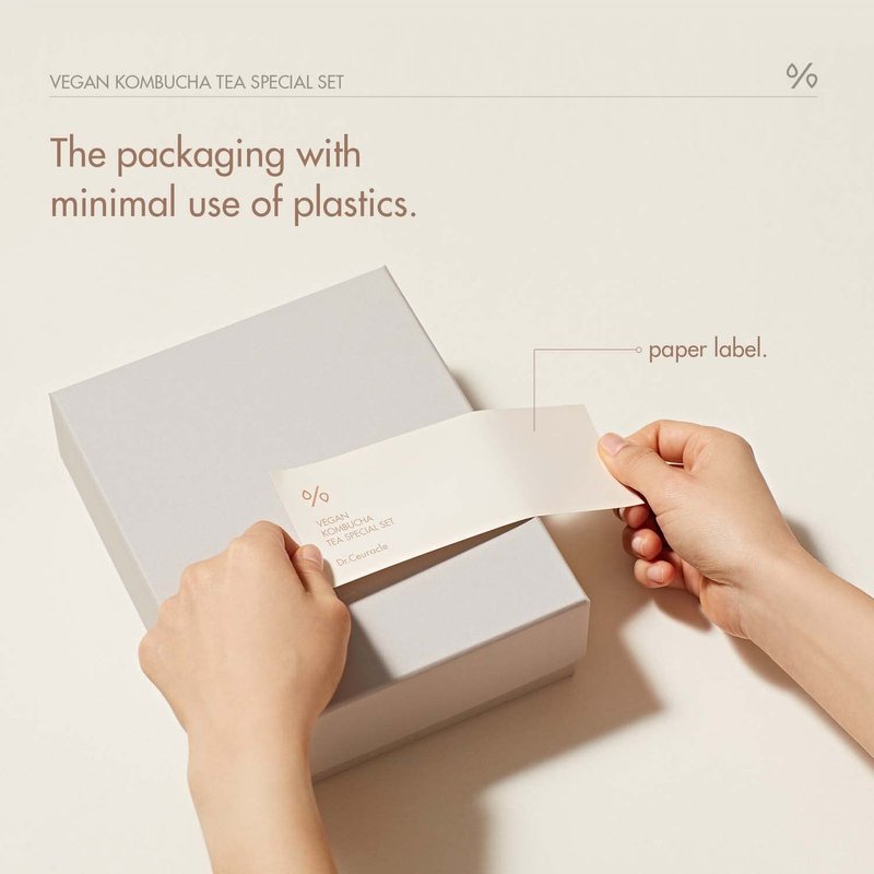 - Vegan Kombucha Tea Special Gift Set: Cream Essence (150 ml / 5.07 fl. oz.), Gel Cream (75g / 2.64 oz.), Lip Balm (3.7g / 0.13 oz) included.