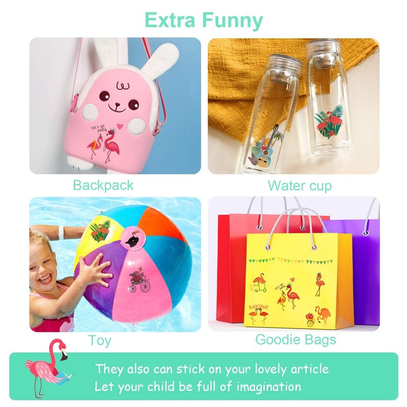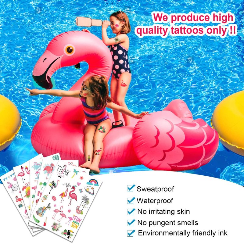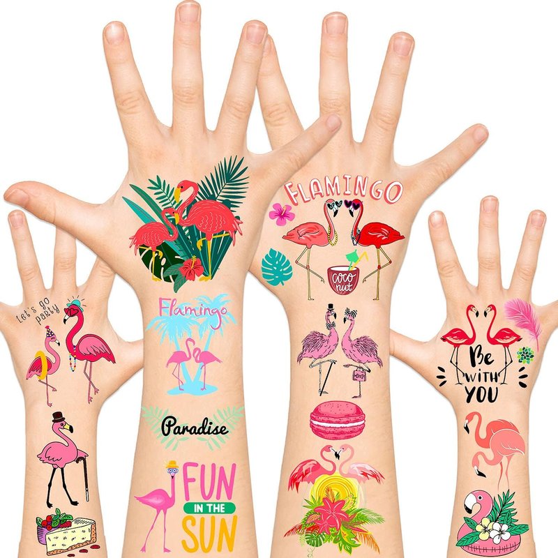 Leesgel 115pcs Hawaiian Luau Flamingo Temporary Tattoos for Kids, Flamingo Party Supplies Favors Decorations, Hawaiian Tropical Pool Beach Tattoo Stickers for Boys Girls