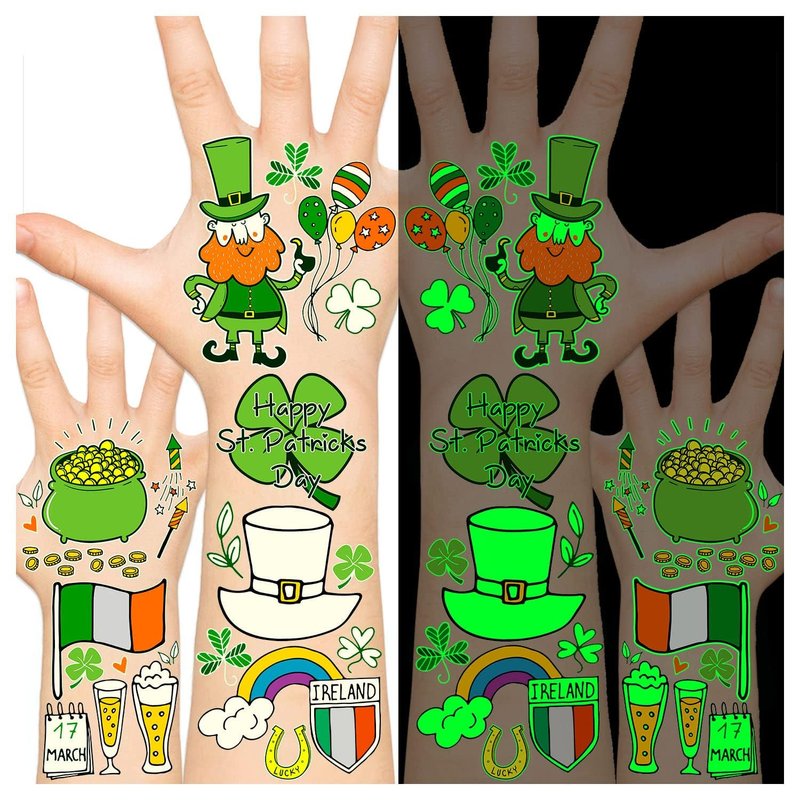 - 【Best St Patricks Day Thing】 Are you worried about which St Patricks Day goods to choose? Leesgel St Patricks Day tattoos have bright colors and cute design! Bring much fun to your family and friends in this St Patricks Day! They will love to apply the St Patricks Day tattoos on their face or hands. It’ s very great for St Patricks Day party!