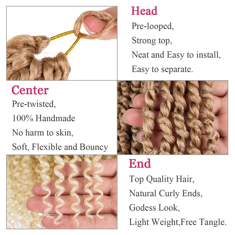 • This Pre-looped Bob Passion Twist Crochet Braids Hair is made of 100% High Quality Low Temperature Synthetic Fiber. It is super cute and natural with Curly Ends, it is also very soft and skin friendly.We also randomly give away some rubber bands or rings .