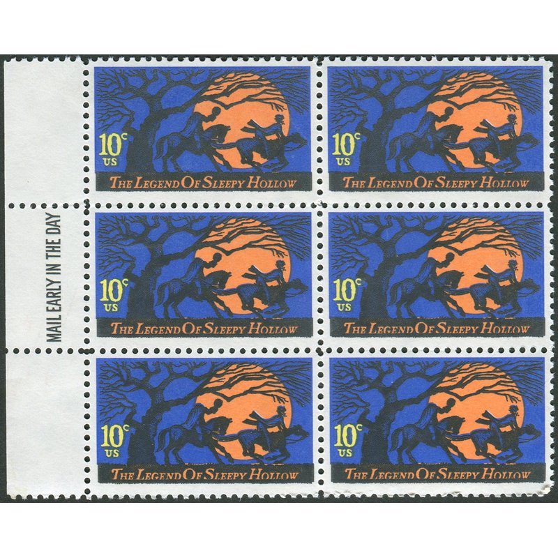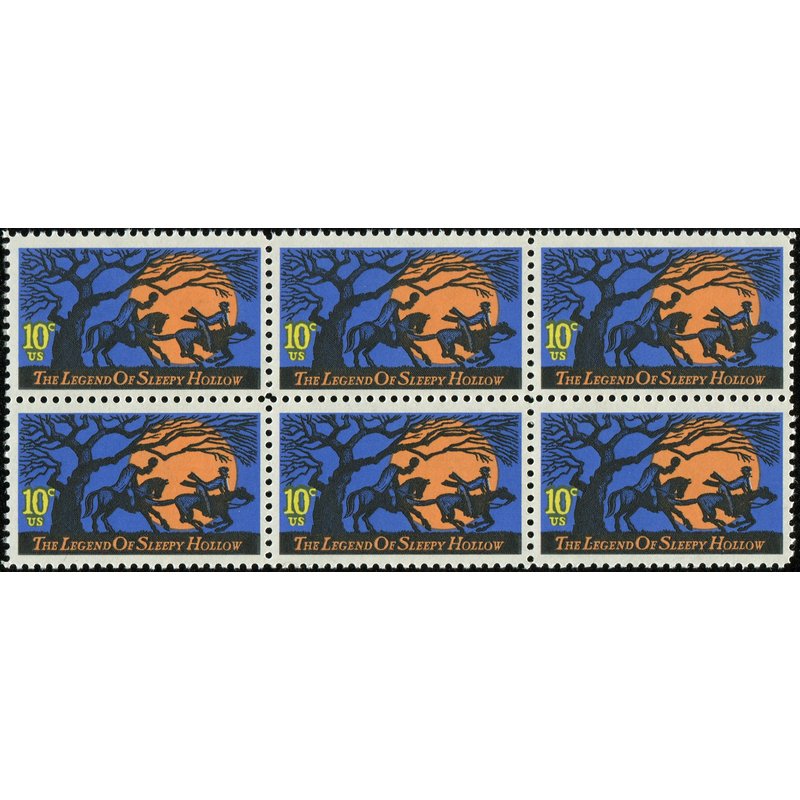 LEGEND OF SLEEPY HOLLOW ~ ICHABOD CRANE ~ WASHINGTON IRVING #1548 Block of 6 x 10¢ US Postage Stamps