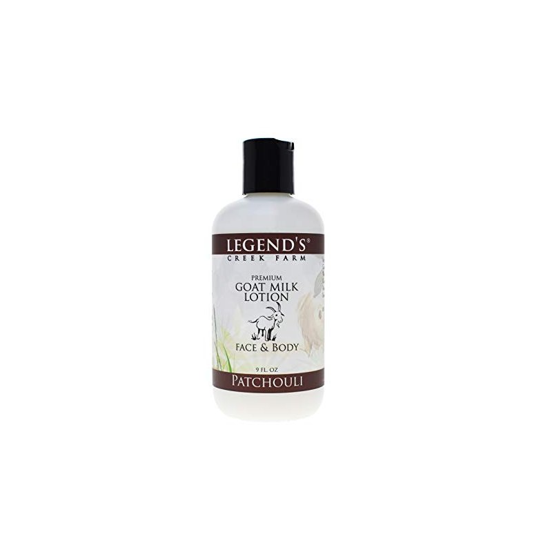 Legend's Creek Farm Goat Milk Lotion - Deeply Moisturizing Goat Milk Body Lotion for Body, Hand & Face - 9 oz Body Moisturizer with Shea Butter, Sunflower Oil, Aloe, Handmade in USA (Patchouli L.)
