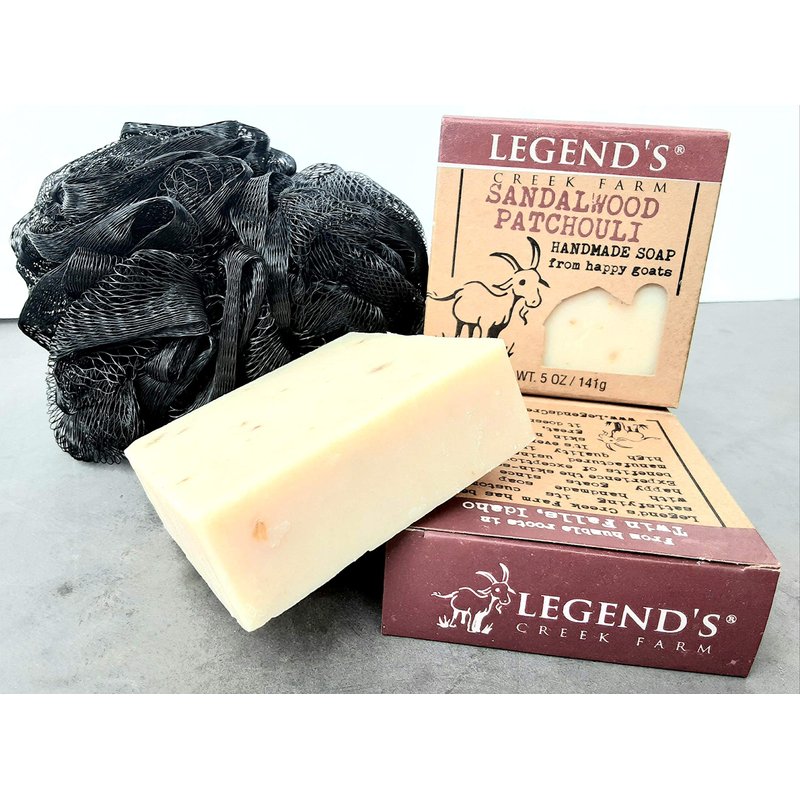 Legend's Creek Farm Goat Milk Soap, Moisturizing Cleansing Bar for Hands and Body, Creamy Lather and Nourishing, Gentle For Sensitive Skin, Handmade in USA (Sandalwood Patchouli, Single)