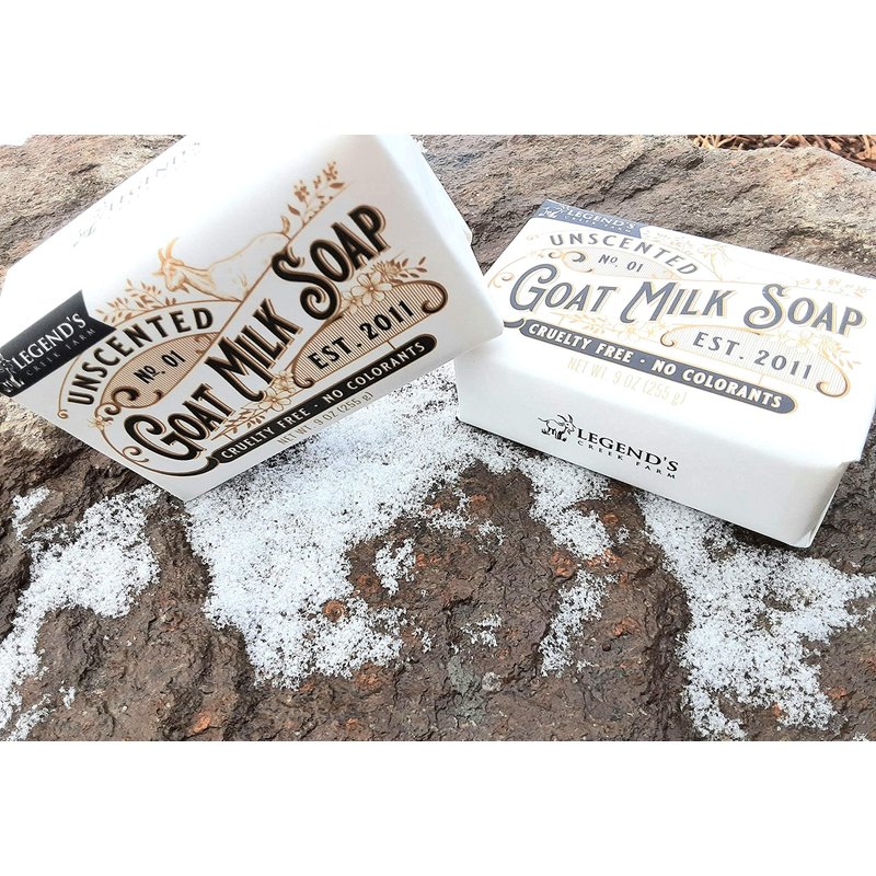 Legend's Creek Farm started over 10 years ago. We wanted to create high quality products that were 100% cruelty free and nourishing to our skin. We still stand by these values. If you've never tried triple milled soap you are in for a real treat! Soap that has been triple milled begins when the soap is passed through rollers that squeeze all of the water out of the bars which results in a bar that is extremely hard when compared to our cold-process soap. This means that not only do the bars last much longer, they are extremely smooth and have an amazing lather! Our unscented triple milled goat milk soap contains NO herbal fillers, botanical ingredients or oatmeal. Things to note about these bars are: Each bar is a whopping 9 ounces and are large. Bars work wonderfully when used directly on the skin but lather even better when using a washcloth or loofah! Triple milled soap never expires and gets denser and creamier with age. Contains no harsh chemicals, parabens, sulfates, fillers or irritants.