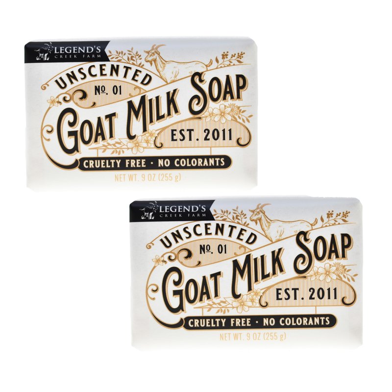 Legend's Creek Farm Goat Milk Soap - Triple Milled Cleansing Moisturizing Soap Bar for Hands and Body - 9 Oz Creamy Lather, Nourishing, Natural Soap for Sensitive Skin (Unscented, Pack of 2)