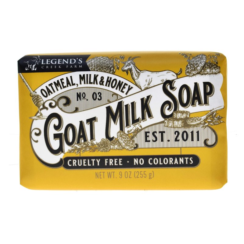 Legend's Creek Farm Goat Milk Soap - Triple Milled Moisturizing Soap Bar for Hands and Body - 9 Oz Creamy Lather, Nourishing, Natural Soap for Sensitive Skin (Oatmeal, Milk & Honey, Pack of 1)