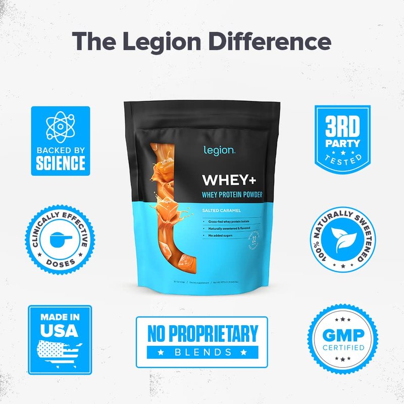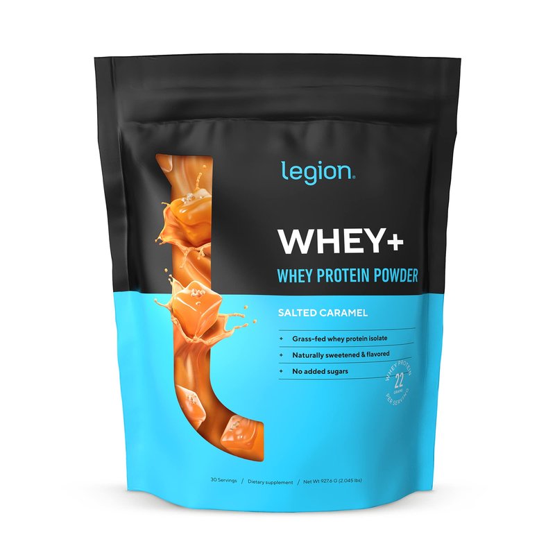 LEGION Whey+ Whey Isolate Protein Powder from Grass Fed Cows - Low Carb, Low Calorie, Non-GMO, Lactose Free, Gluten Free, Sugar Free, All Natural Whey Protein Isolate, 30 Servings (Salted Caramel)