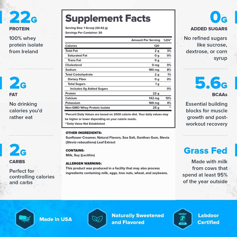 Whey protein isolate is the highest quality whey you can buy, and that’s why every serving of Whey+ contains 22 grams of protein with little or no carbohydrate and fat.