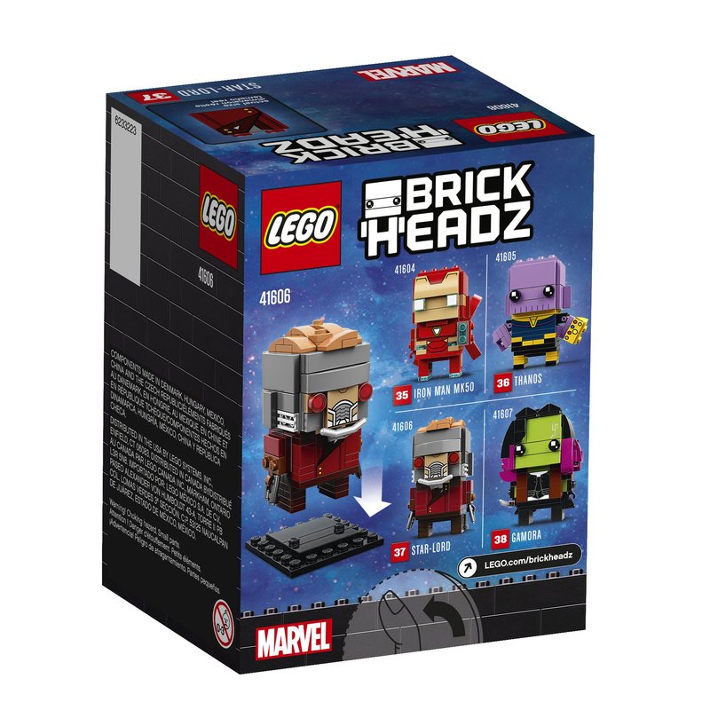 - Build a LEGO BrickHeadz Marvel toy Star-Lord figure with helmet, boot rockets and blasters for galactic action