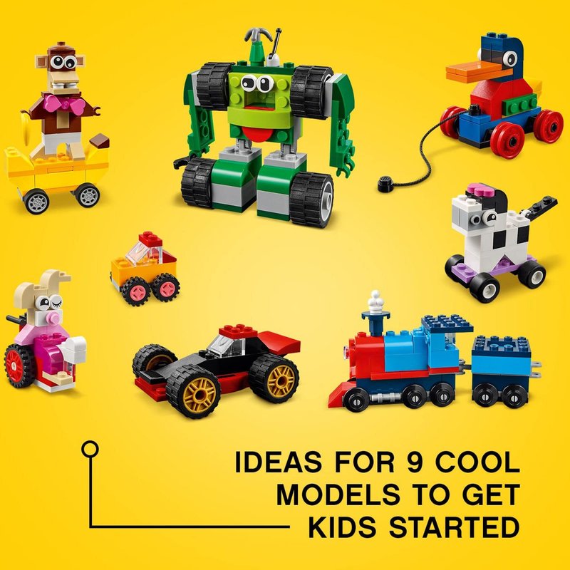 - The LEGO Classic Bricks and Wheels (11014) playset makes an impressive gift for any occasion. Suitable for boys and girls aged 4 and up