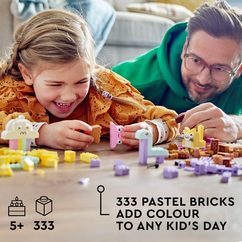 - Includes 333 LEGO building bricks in 6 pastel colors, 18 of which have expressive eyes that children can use to bring their creations to life
