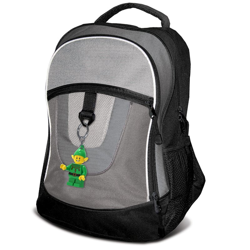 - Officially licensed LEGO Elf Keychain Light featuring LED lights in the feet and an on/off switch in chest.