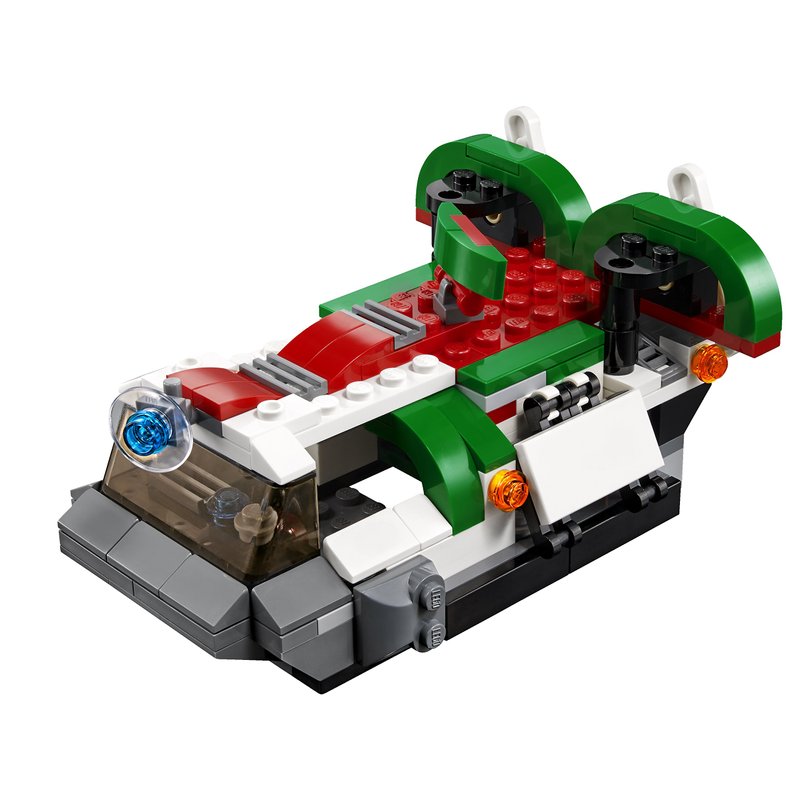 • Off roader can accommodate a minifigure (not included); 3-in-1 model: rebuilds into a helicopter or a hovercraft