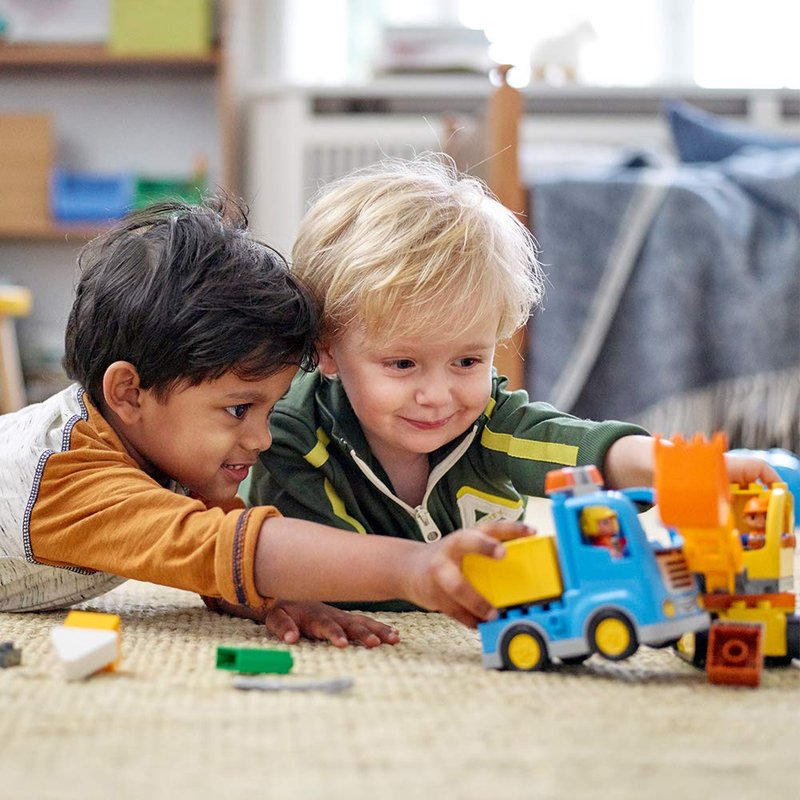 - Kids will have a truckload of fun with these toy construction vehicles from LEGO DUPLO! They can dig into their imaginations as they use the toy dump truck and excavator to build a LEGO town of their dreams