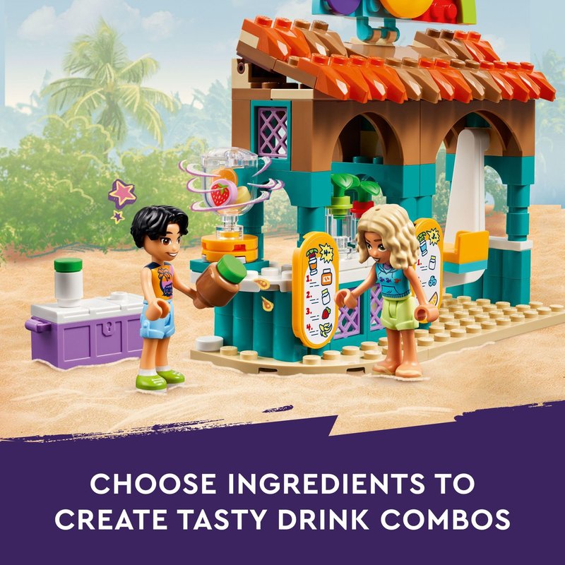 - Kids’ play food set – Girls and boys ages 6 and up can enjoy smoothie-making fun at the beach with this LEGO Friends Beach Smoothie Stand pretend play beach toy, which includes 2 mini dolls and a turtle figure