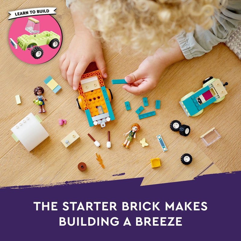- This fun set includes a starter brick for the LEGO Friends toy car; a sturdy base that gives young builders a head start with their caravan toy
