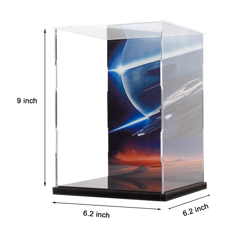 🌝Acrylic Display Case for Lego Helmet - Interior 6.2x6.2x9 inches, PVC Base,Custom Background. Fit for 75328 75277 75327 75304 75276 75274 76165, Assemble Dustproof Display Box Showcase.