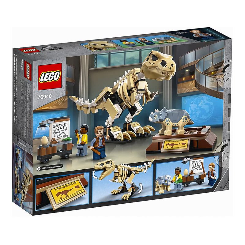 - Kids can build their own T. rex Dinosaur Fossil Exhibition and role-play as paleontologists with this fun-packed LEGO Jurassic World toy playset (76940), featuring a buildable T. rex skeleton model